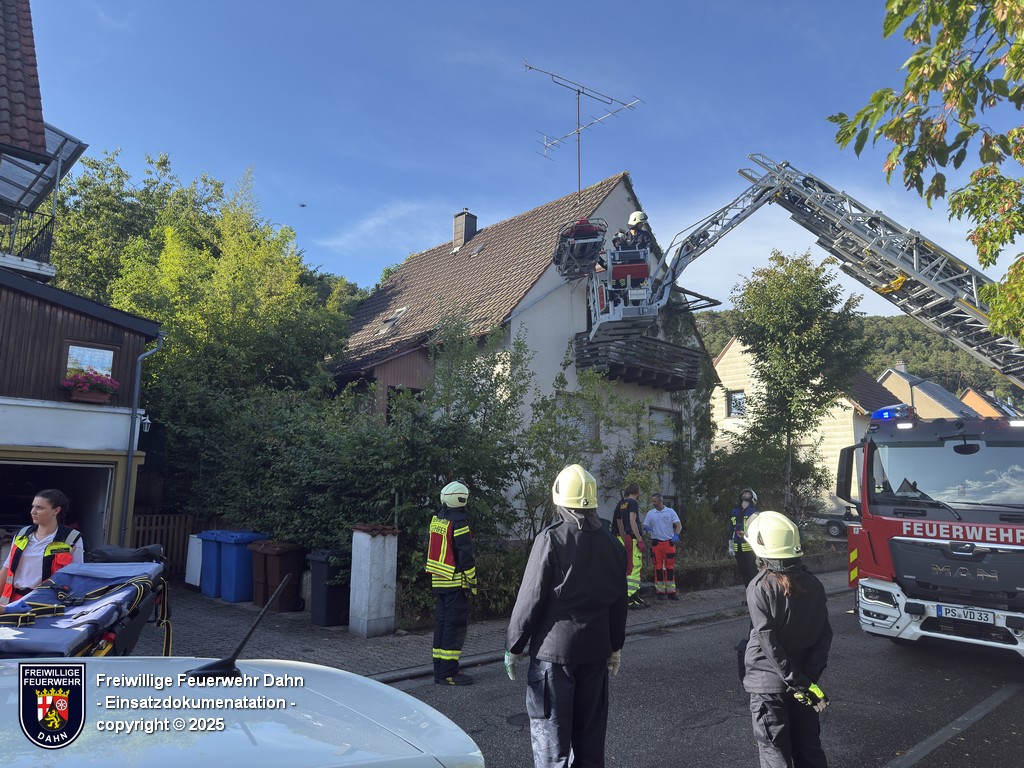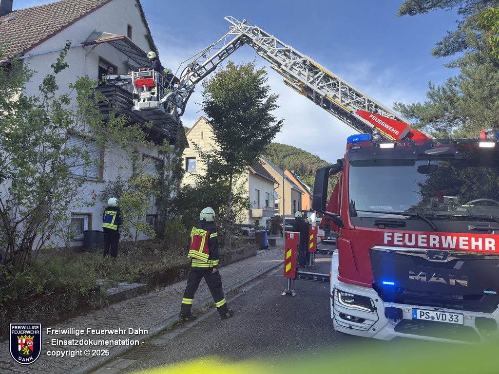 Durch den Rettungsdienst wurde die Drehleiter zur Personenrettung aus einem Gebäude in Dahn angefordert, da der Treppenaufgang nicht für eine Rettung geeignet war. Der Verletzte wurde in einem Schleifkorb und der Tragehalterung über den Drehleiterkorb zu Boden verbracht und dem Rettungsdienst übergeben.