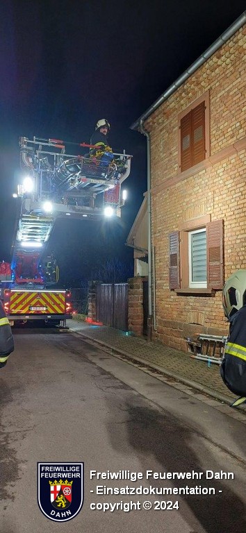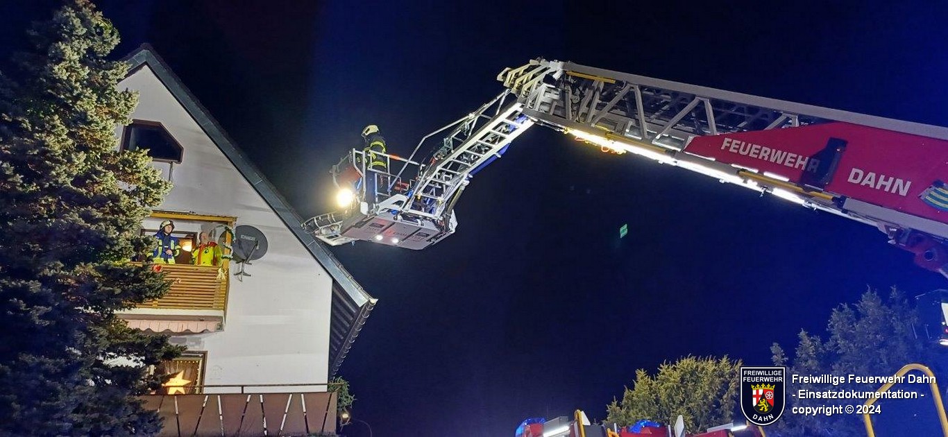 Am Abend des 2. Weihnachtsfeiertages wurde die Feuerwehr Hinterweidenthal zusammen mit der Dahner Drehleiter nach Hinterweidenthal alarmiert. Bei einem häuslichen Unfall verletzte sich eine Person im 2. OG eines Wohnhauses und musste schonend zum Rettungswagen transportiert werden. Dies war durch das beengte Treppenhaus nicht möglich, sodass der Patient in der Schleifkorbtrage auf der Drehleiter aufgenommen und sanft zu Boden gebracht wurde, wo er dem Rettungsdienst übergeben wurde.