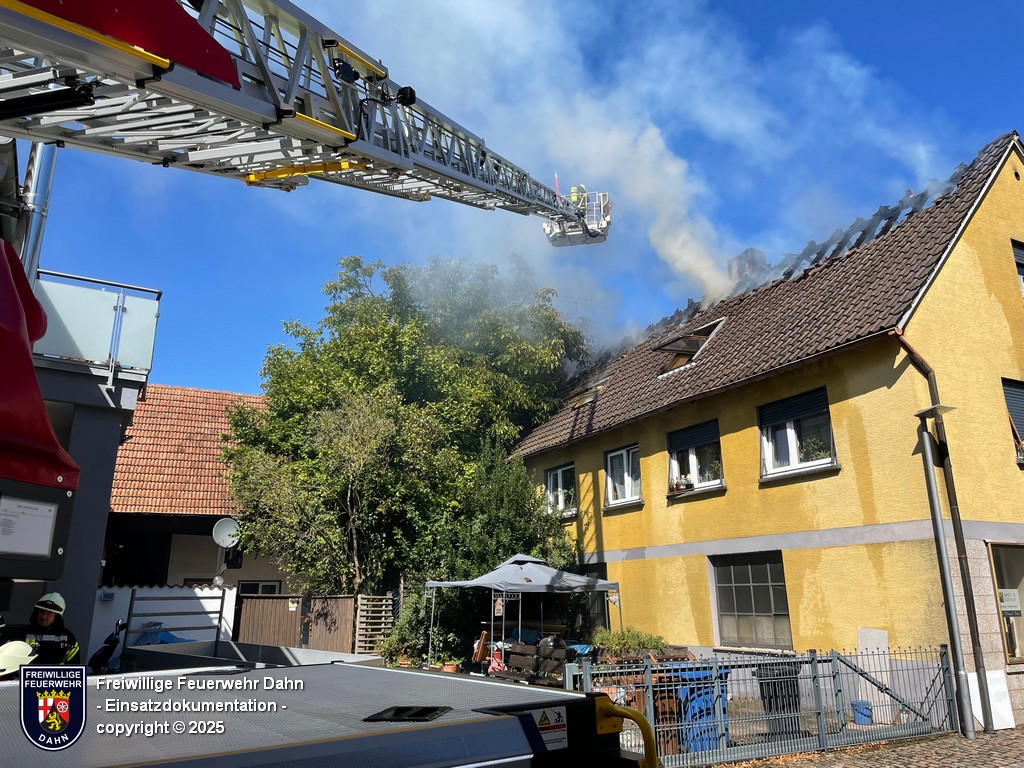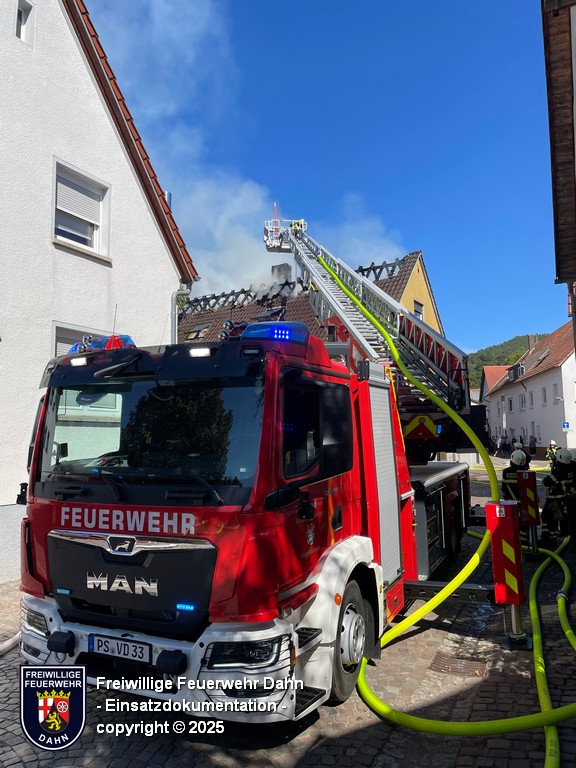 +++ Gebäudebrand in Busenberg - Flammen breiten sich in Dach aus - rund 85 Einsatzkräfte verschiedener Organisationen vor Ort +++