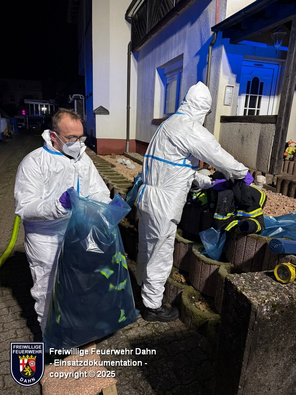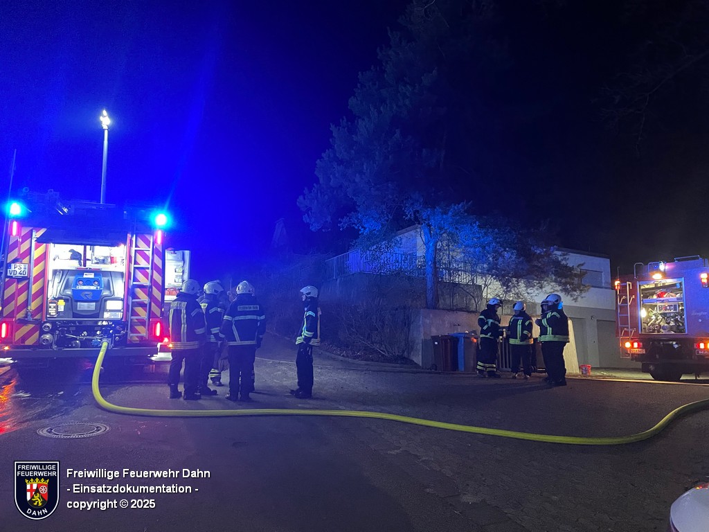 Am Freitagabend kurz nach dem wöchentlichen Übungsabend piepten kurz vor Mitternacht die digitalen Funkmeldeempfänger der Feuerwehrangehörigen Erfweiler und Dahn. Gemeldet wurde der Brand einer neben einem Wohnhaus stehenden Sauna in Dahn. Diese Meldung wurde durch die ersteintreffenden Kräfte nach der Erkundung bestätigt. Nachdem eine lange Schlauchleitung in den rückwärtigen Bereich des Grundstückes zur Sauna verlegt war, konnten zwei Atemschutztrupps unter schwerem Atemschutz den Brand bekämpfen. Um letzte Glutnester abzulöschen mussten mit einer Rettungssäge Teile der Boden-Holzverkleidung entfernt werden.